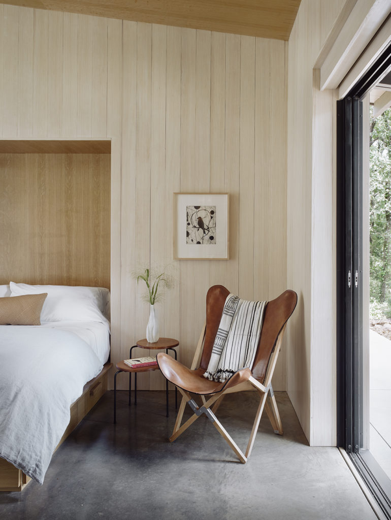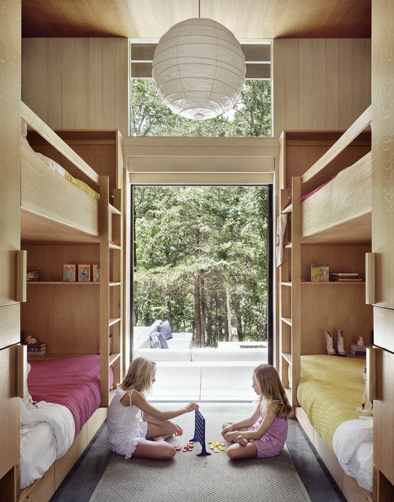 “Very cohesive, timeless design that’s beautifully executed. A great balance of warm, natural texture and modern, clean-lined elements. The industrial touches are unexpected and refreshing. Added storage underneath the beds and bunks is a wonderful use of space in a smaller structure. The limited palette of materials also adds to the feeling of spaciousness.” — Brooke Giannetti