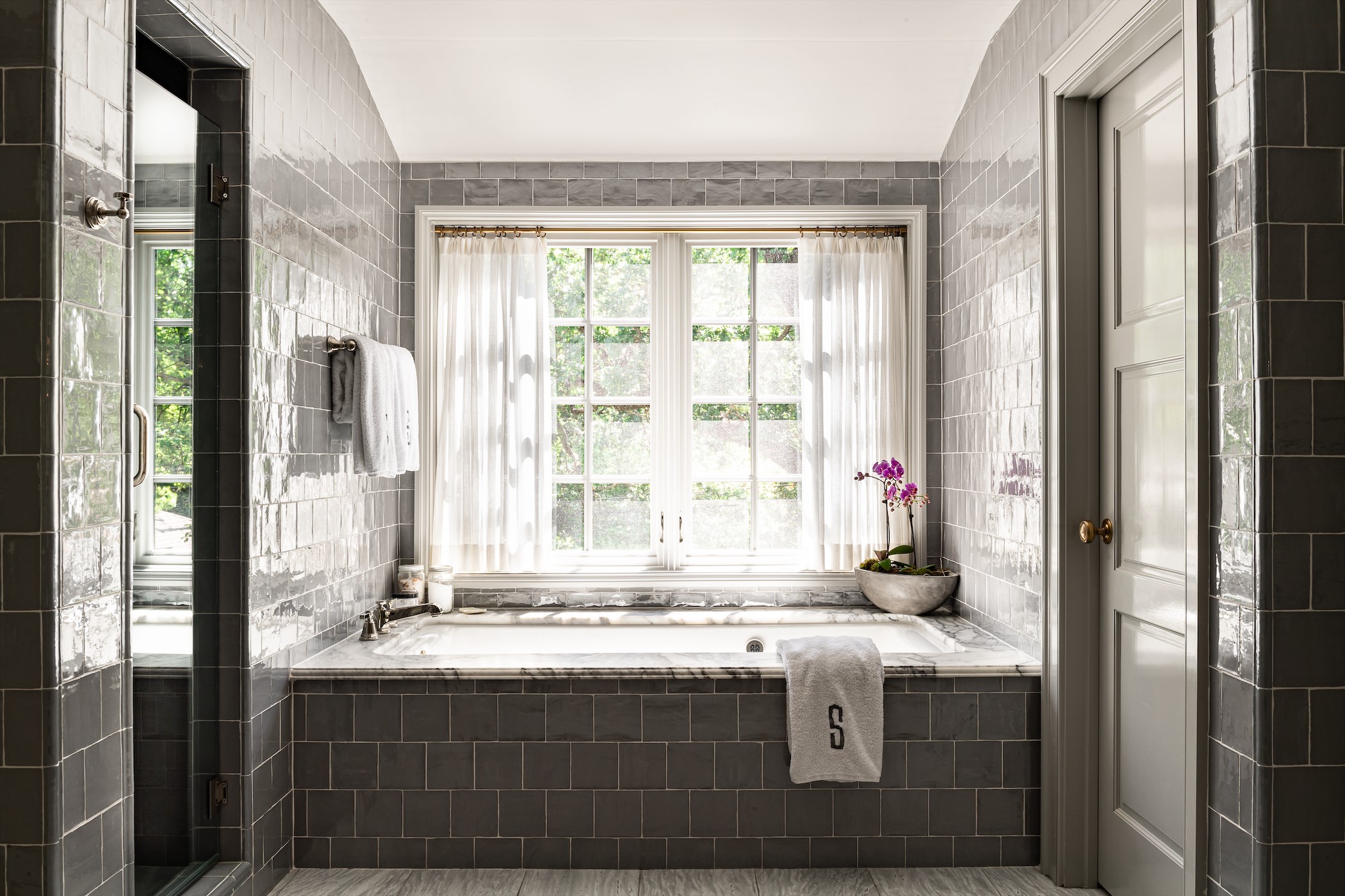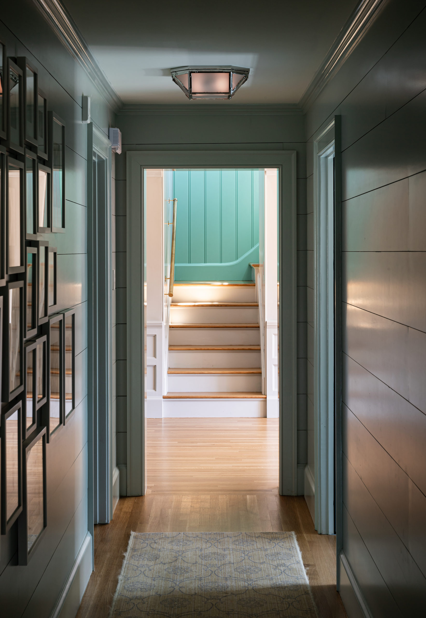 With input from Lizzie, Sell sketched many versions of their house on paper napkins in restaurants and on paper towels in their kitchen until they came up with one that felt like home: a modern take on traditional. “It’s a symmetrical design with a traditional stair hall in the middle, formal living on one side, and dining and kitchen on the other,” he says. “But we gave it a little pizazz with dramatic wraparound windows in the kitchen and study. And we took a cue from Lindeberg’s work in New York, with a long ribbon-style dormer on the attic level to create a playroom for the kids.”