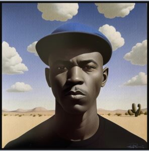 Several artworks stand out in their critique and celebration. Nathaniel Donnett tackles capitalism in A Piece of the Pie (2012). Meanwhile, Robert Hodge pays homage to Henrietta Lacks in The Immortal Life of Henrietta Lacks (2024), a timely mixed media piece. In light of current events, it resonates amid the recent undermining of health and science research entities in Washington, D.C. It also speaks to the systemic racism Lacks endured within medical science. Rodshir Dailë, based in Paris, created another one of the exhibition’s standout works with his Portraits in Distant Lands series.