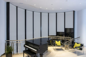 Geiger’s vision is sleek. His shading system designs are intentionally streamlined to optimize views and eliminate intrusive valances. His patented hardware allows shades to be mounted close to the glass so that they take up very little interior space. J Geiger hardware can also be mixed and matched in such a way that shades can be mounted one after another, in continuous series to cover large floor-to-ceiling windows.