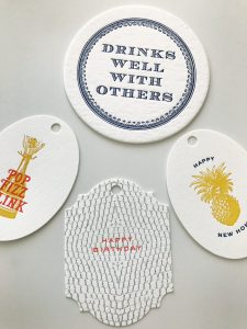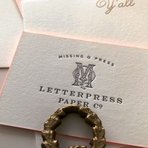 While the same beloved MissingQ services are offered — graphic design, custom invitations and stationery, monogramming, letterpress printing, and engraving — the space will now play host to private Letterpress Parties, where one can sip champagne and customize one’s own calling cards, tags, coasters, and more.
