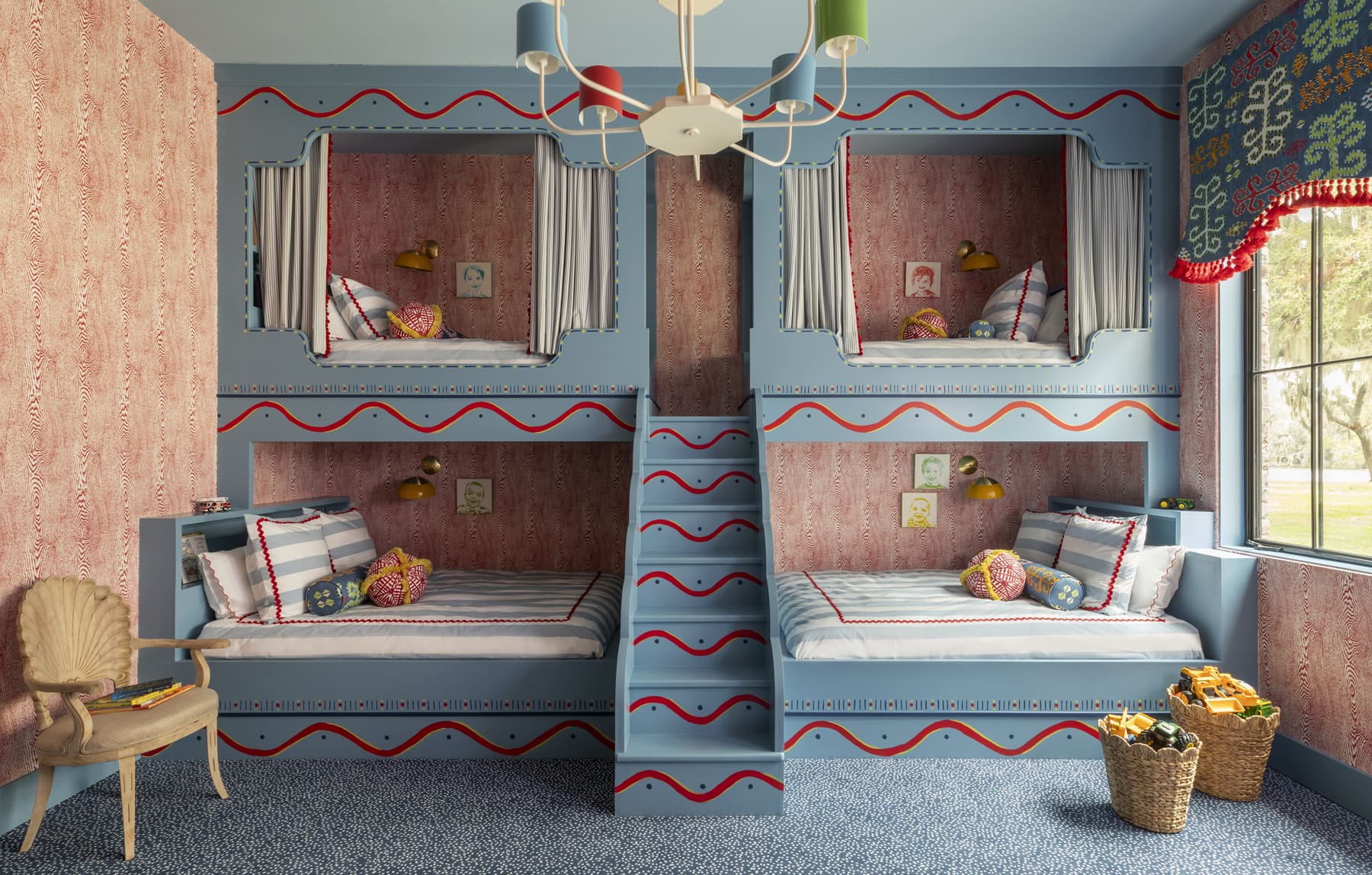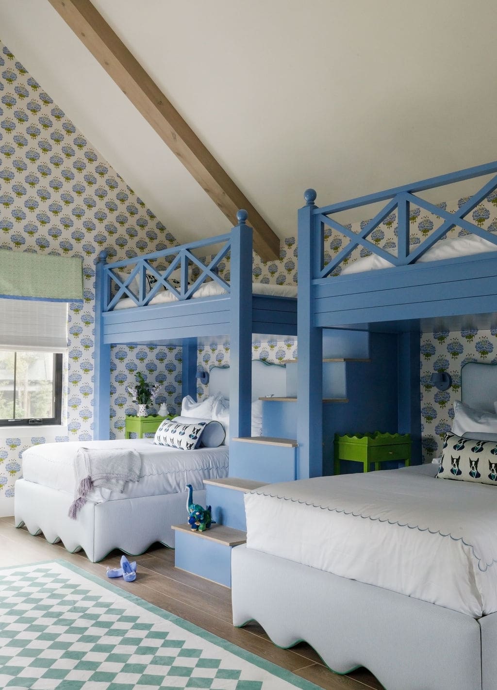 “Perfectly whimsical — from the wallpaper to the rug — I love the playful mix of colors in this space. It feels open to all genders and personalities, making it the ideal backdrop to dream, grow and create. Some very lucky children, indeed.” — Jaqui Seerman