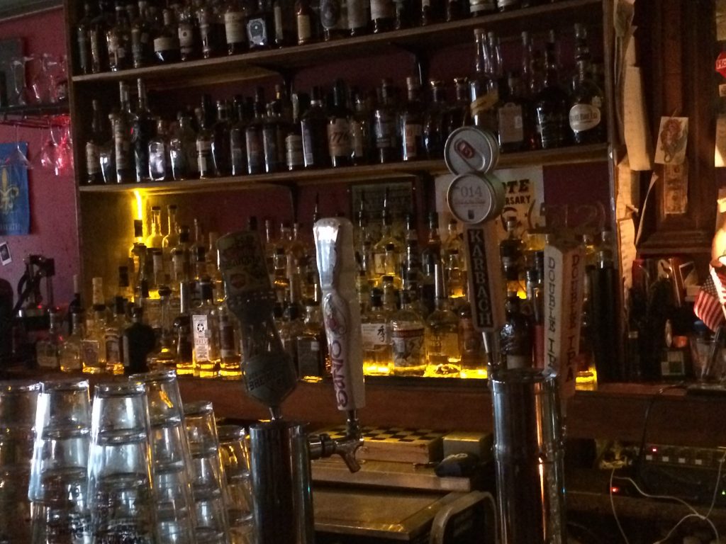 He points to a painting with a curvy gal in front of a black backdrop, behind the bar above all the bourbons. “And we call her Felicia.”