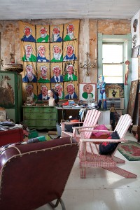 And wonders they are, indeed – also uncanny, charming, disturbed and at times the closest encounter we’ve ever had with a Wunderkammer as living space. Talents such as St.Vincent, Cindy Sherman and David Byrne have sought out and collected from Julie and Bruce Lee Webb‘s celebrated Webb Gallery, a frequent exhibitor at the Outsider Art Fair (and also occasionally the Dallas Art Fair). But the Webbs’ house — footsteps from Waxahachie’s majestic historic courthouse, located above their turn-of-the-century storefront turned art space in the hamlet’s town square — has never before been written about.
