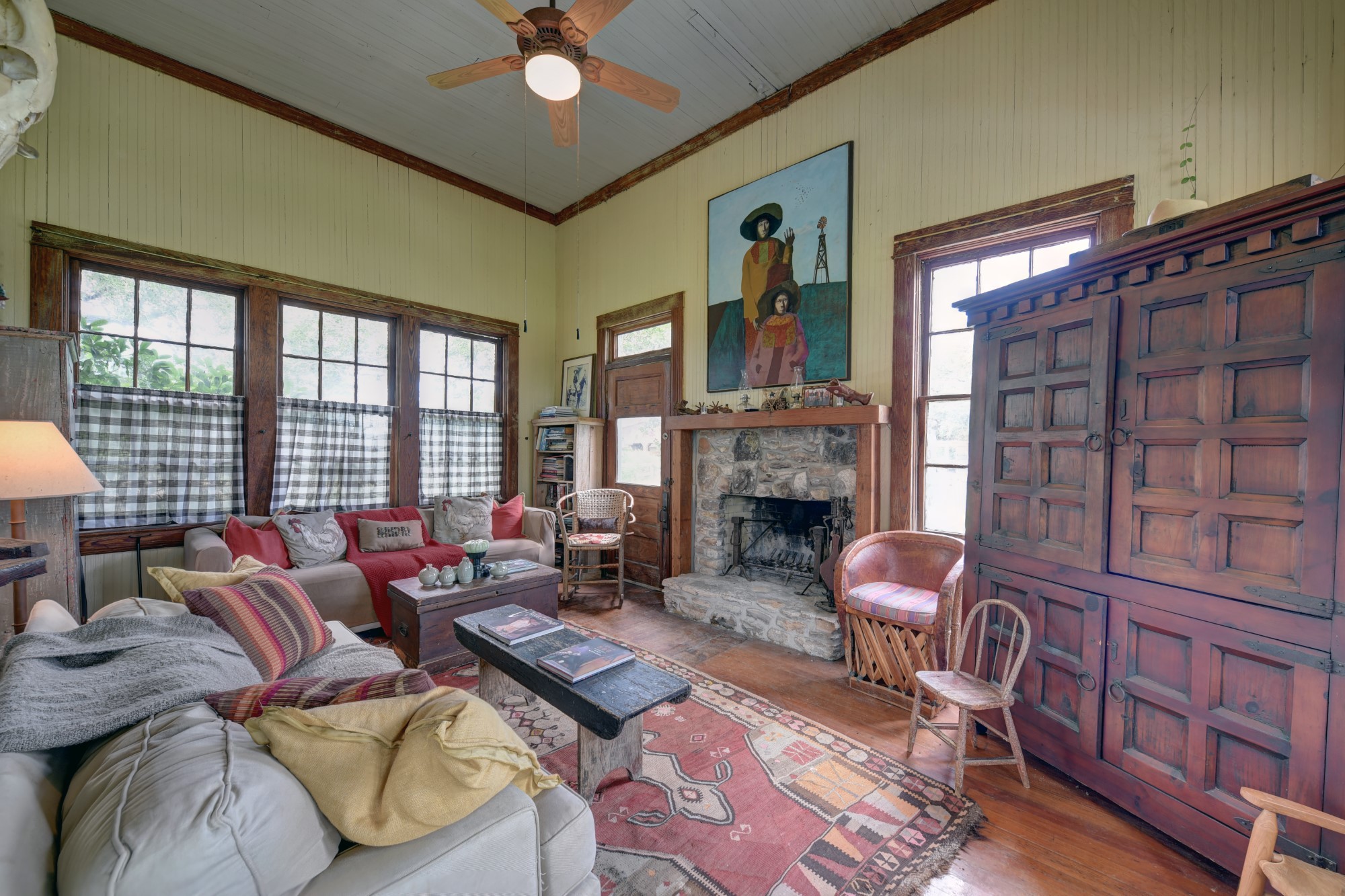 For some potential buyers, the glories of this property, listed with Jeanine Kaminski-Ditzel of John Daugherty, Realtors, would lie within the dwellings. The main house is a converted Santa Fe train depot that exudes Western charm and comfort. The station master’s office, for example, is today a spacious country kitchen while the master bedroom was carved from the former freight room which affords high ceilings, open truss work and a screened porch. Details include long-leaf pine and cypress construction, pine floors and a custom stone fireplace. There’s a guest room on the second floor. And that is just the beginning.