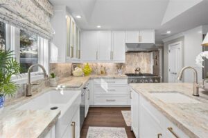 Amenities include heated floors, a steam shower, and a freestanding tub, in the primary suite. Entertain in the media room with a drop-down projector and screen, or outdoors by the heated pool, with a covered patio and an outdoor kitchen. Rare materials and stylish updates abound in this Westover home.