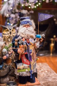 Cynthia allows that the tree began at 8-feet but as the collection of owls and Rice memorabilia grew, so did the tree. Today, it stands 14 feet tall, every square inch loaded with decoration. And, yes, they are still collecting owls.