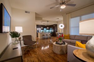 Amenities: 26,000 square feet of ground level retail, direct access to light rail, fitness center, some ceilings over 11 feet, valet parking, resort-style pool, two-level club room, rooftop deck plus ClubCorp membership.