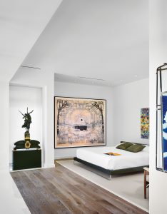 “I wanted to have a space that celebrated the art and was not just a passive foil for it,” he says. He worked closely with Julie Kinzelman of Kinzelman Art Consulting to buy artworks for specific areas in the house. “She understands what art can do for you in a bigger sense, in terms of your emotions and how you enjoy it,” he says. “The works I gravitate to show how the artist created the piece.”