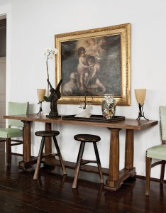 Yet, this artist’s casa is not just a monument to austere minimalism. For within its pristine spaces, objects lovingly culled from places near, far and family, vibrate with power. “My sources for treasures,” the artist says, “are fleas, estate sales, travels, antique shops and City of Houston heavy trash days.”
