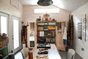 How did she and the house meet? Looking for a life change after her husband, Tim McGlashen (musician/frontsman for The Buddhacrush), passed away, she sought out a new scene and began searching for a classic Montrose bungalow. This one was love at first sight, not because of its handsome interiors (pristinely restored and updated by the previous owner), but because of a ramshackle little structure out back. Cusack recalls, “When I looked through and saw a crumbling shed, I instantly knew: There was my future studio. No one else wanted the house because of that building — but for me, it was perfect.”
