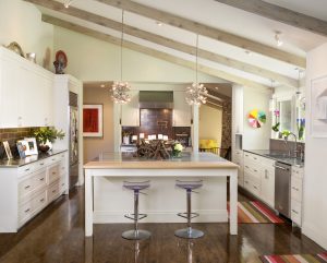 What this 1960s ranch house lacks in grandeur, it more than makes up for in style. The mid-century modern architecture is complemented by the homeowner’s contemporary decor and collection of eclectic art. Not pictured: the sweet pool in the backyard.