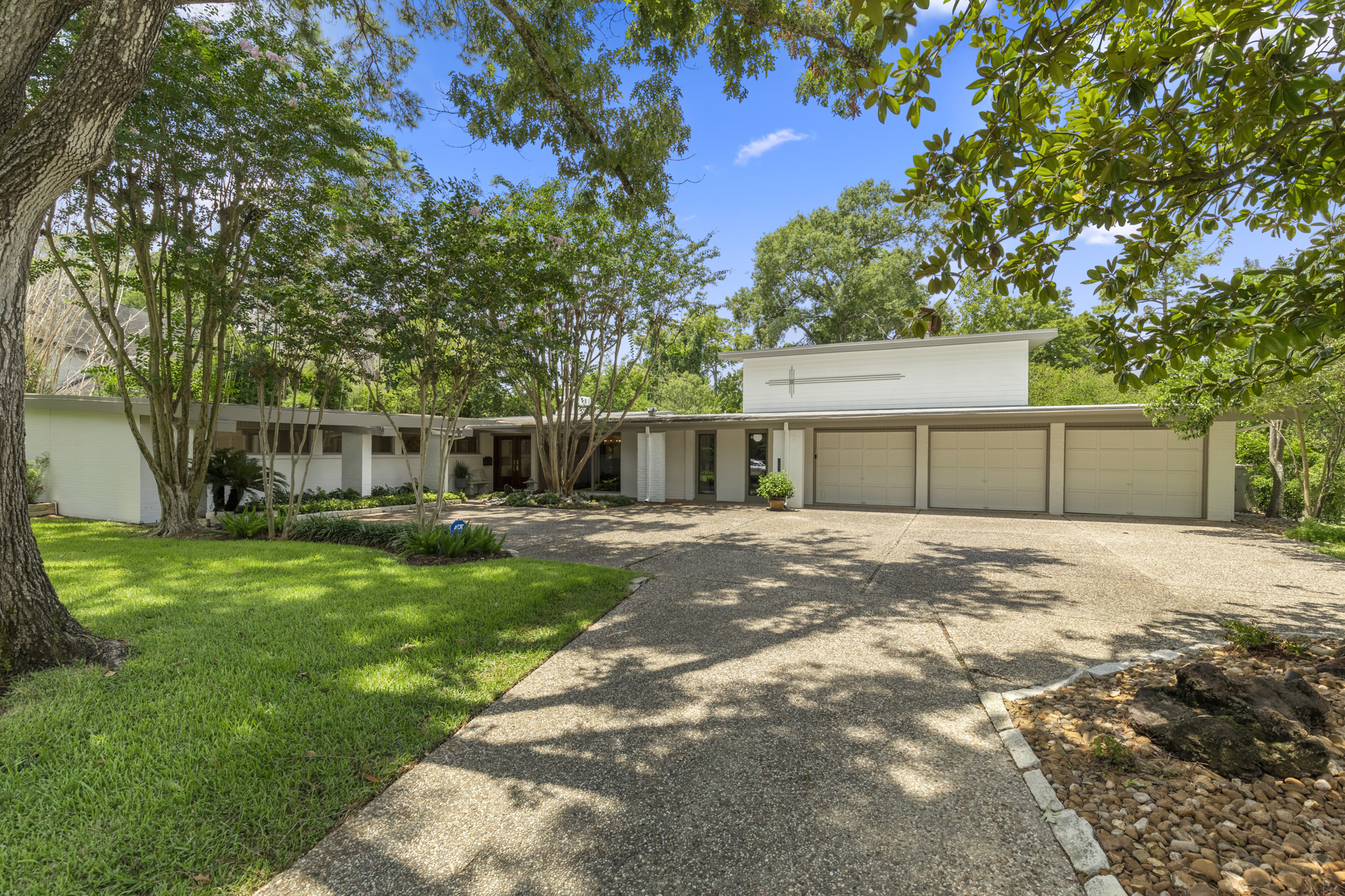In searching for your next landing pad, if mid-century modern is your preferred architectural style and you are the least bit preservation minded, this 1955 dwelling in the Memorial area could be your ticket to living happily ever after. Consider the vital elements — numerous glass walls, interior walls of masonry brick and stone, a sunken living room, original parquet floors and a concrete roof. In short, the home has been meticulously preserved.