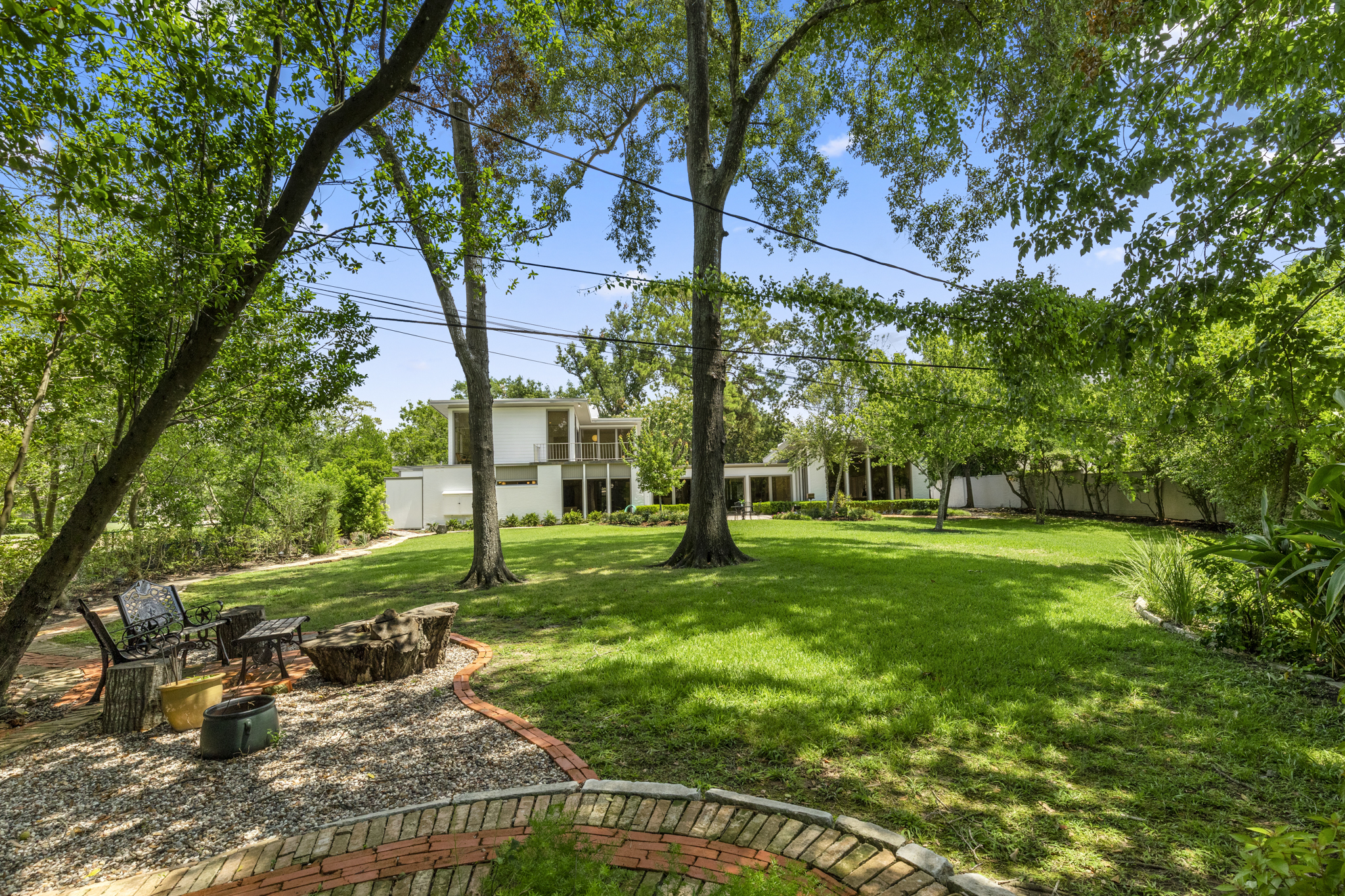 In the late 1970s, the house was thoughtfully expanded by 2,000 square feet with several well-integrated rooms by designer Adrian Flake. That addition took the house to a total of 4,628 square feet, including four bedrooms and four baths. Prospective buyers will find the appealing additions of the main living room, a spacious primary bedroom and bath with two walk-in showers, a three-car garage, and — accessed by a spiral staircase — a second floor bedroom with a terrace overlooking the vast backyard.