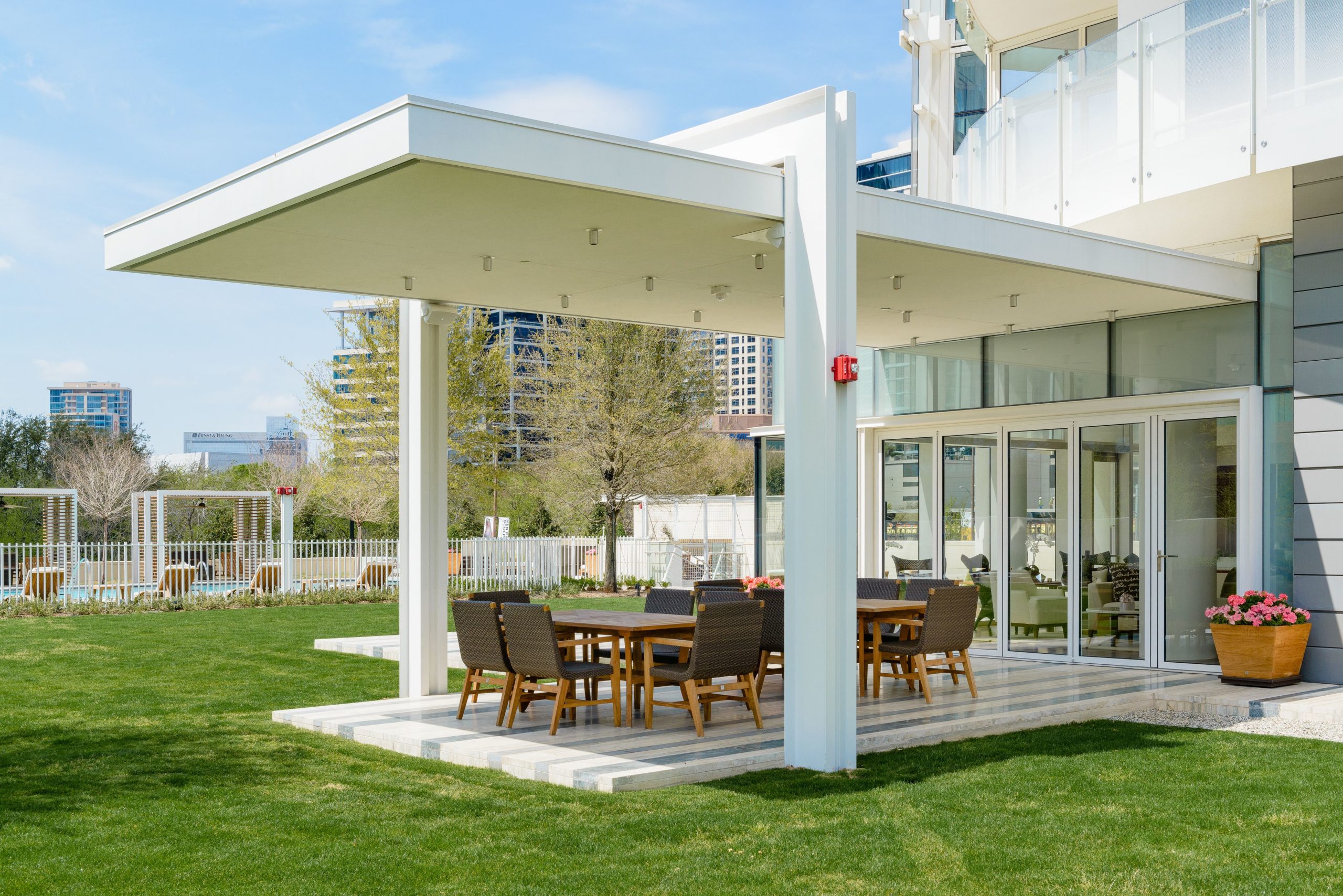 The tower itself was conceptualized by architect Scott Johnson and is known for its distinctive curving glass sails and sweeping views of downtown Dallas. With the Dallas Museum of Art, Meyerson Symphony Center and the Winspear Opera House all nearby, Museum Tower’s location is incomparable.