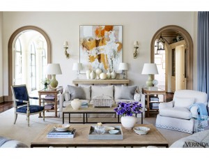 Houston designer Randy Powers, whose shingle reads J. Randall Powers Design, snags another coveted cover, Veranda‘s July-August cover along with 14 pages, for client X. The owners of the gorgeous Italianate palatial home are anonymous, but clues include: a low-key demeanor, River Oaks, limestone façade and copper roof, 14-car subterranean garage that doubles as a ballroom. Hmmmm … Johnny Steele designed the equally gorgeous Italianate gardens, and architect is Drew S. Wommack.