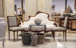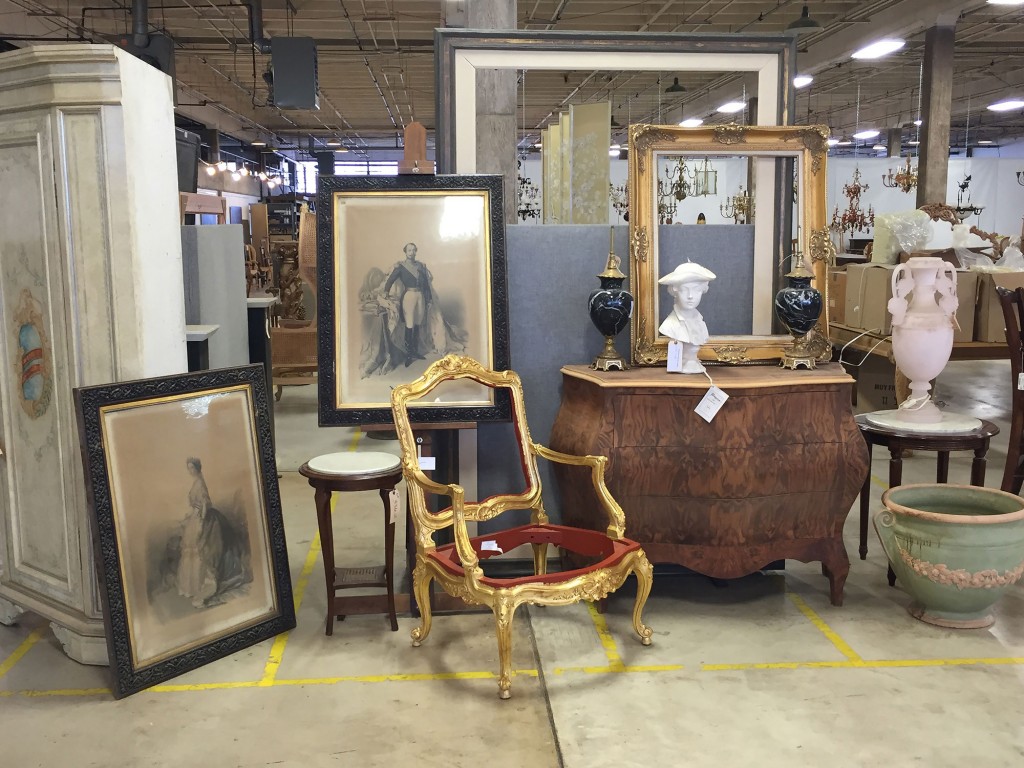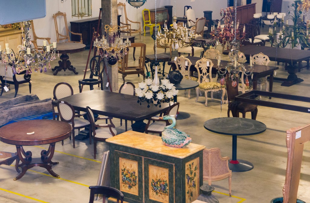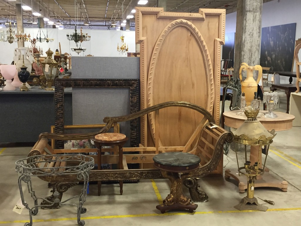 Valued at $9 million, the inventory includes full Baccarat and Waterford-style chandeliers, some seven feet tall; multitudes of individual vintage rock-crystal, rose and amethyst-quartz drops, as long as 10 inches; antique European chairs and tables acquired by Orr that were used as models for reproduction in Italy; stacks of old carved frames; Bombay chests painted in a base of dirty gray or dirty white; and unfinished French-style bergères and Directoire-style furniture.