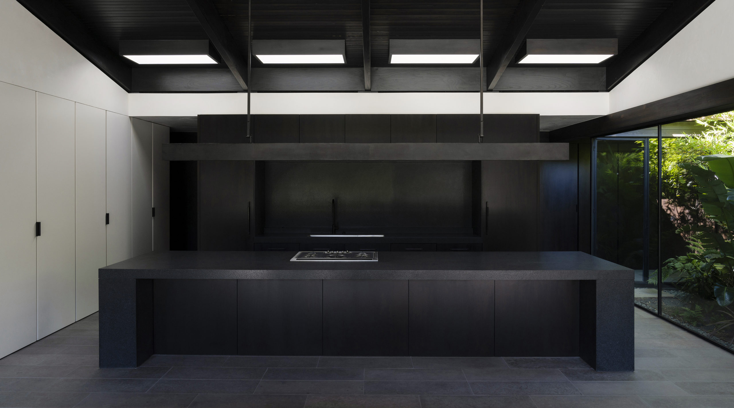 The dwelling indeed has an emotional pull from the vast expanses of glass that overlook an almost jungle-like ravine landscape on one side to a manicured minimalist garden on the other. As one tours the house with Robertson, excitement soars just as the ceilings of the cathedral-like great room and dining room wing upward.