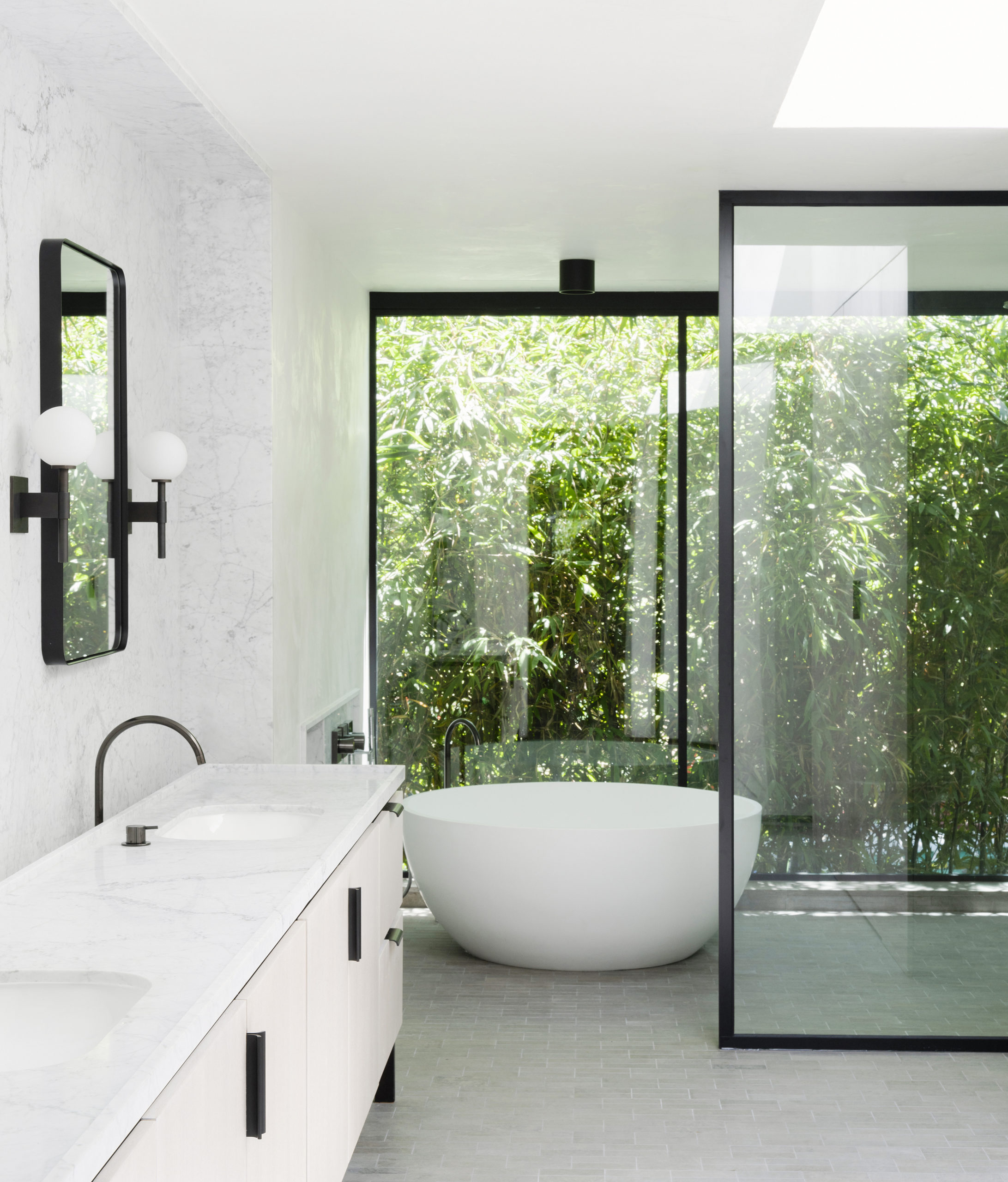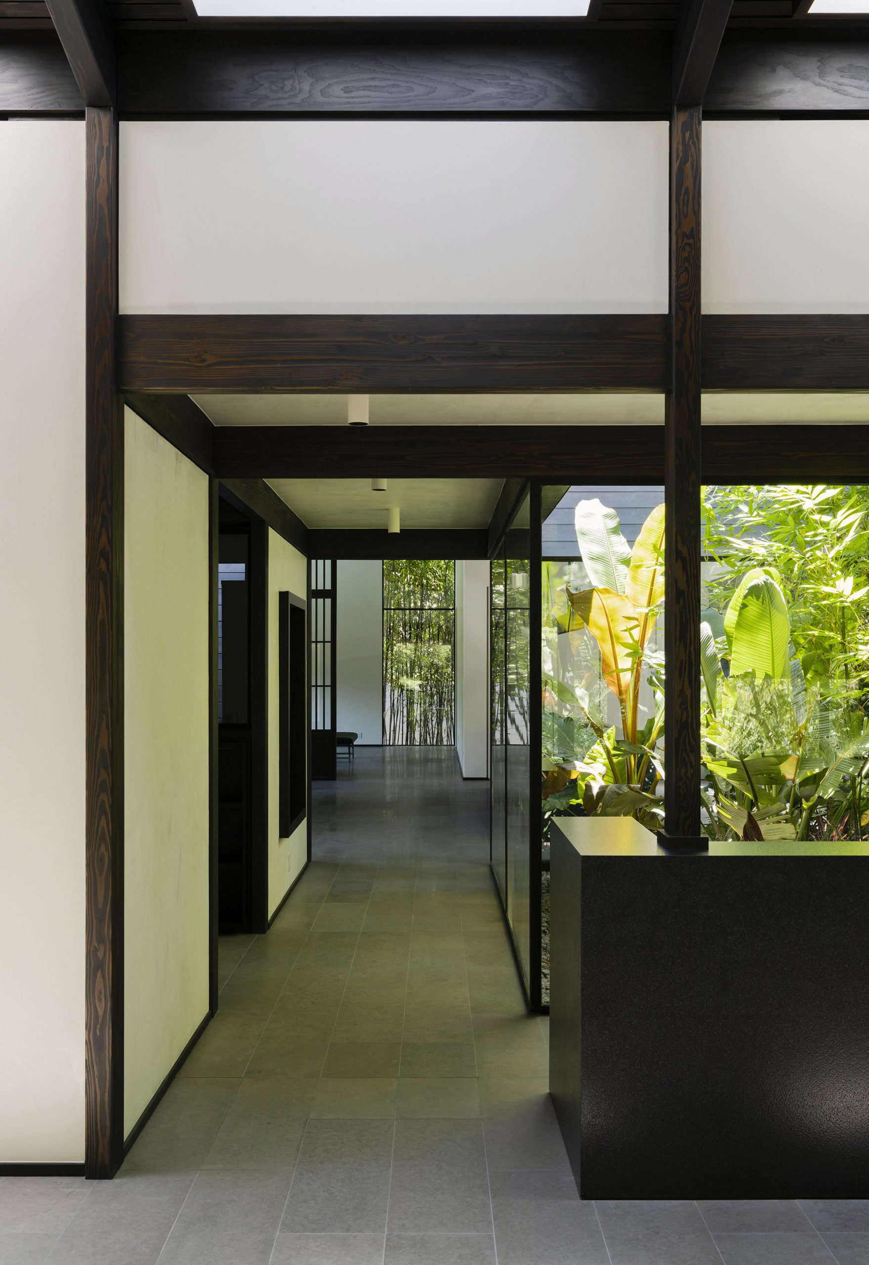 Two primary axises, anchored by a sunny yet lush interior courtyard, lead the visitor on the journey that had one guest comparing the sleek residence to that of an Aman hotel, the international luxury hotel group noted for its modern design. Robertson was pleased by the analogy.