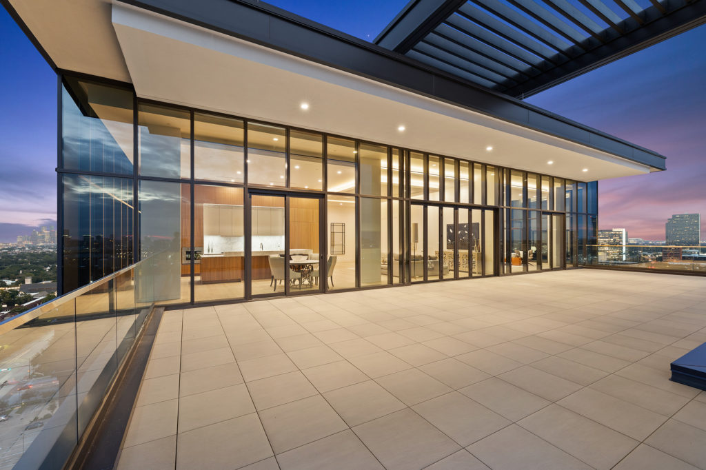 The sophisticated penthouse rests atop the Miesian style structure that was built in 1967 at 3433 Westheimer as an apartment tower. The multi-million dollar reimagining began in 2014, under ownership of New York-based Arel Capital, which hired Rottet Studio to handle the renovation project.