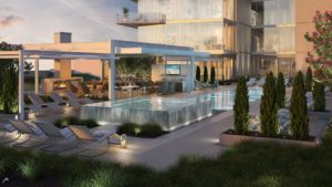 BY Megan Ziots //Windrose Tower offers amenities such as an amenity deck with a pool, cabanas, and grills.