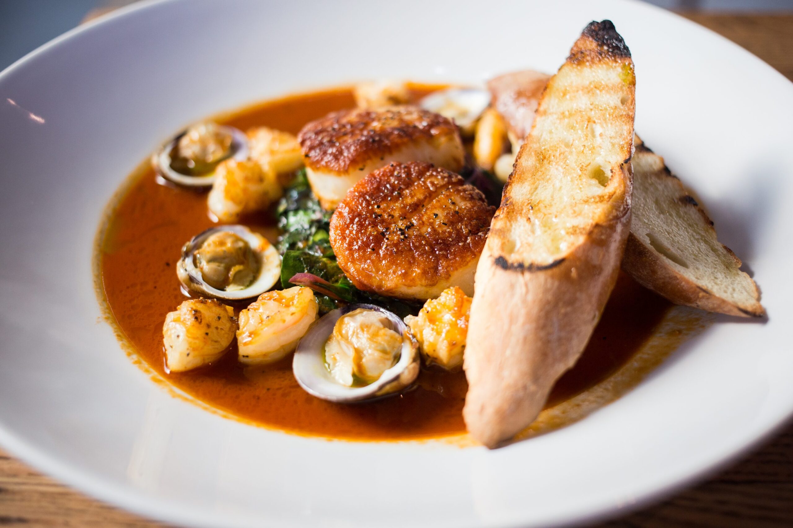 A brunch menu, served both Saturday and Sunday, is also available, offering morning staples such as bagel & lox, fried chicken and waffles, pork belly crepes, and an egg white crab omelette.