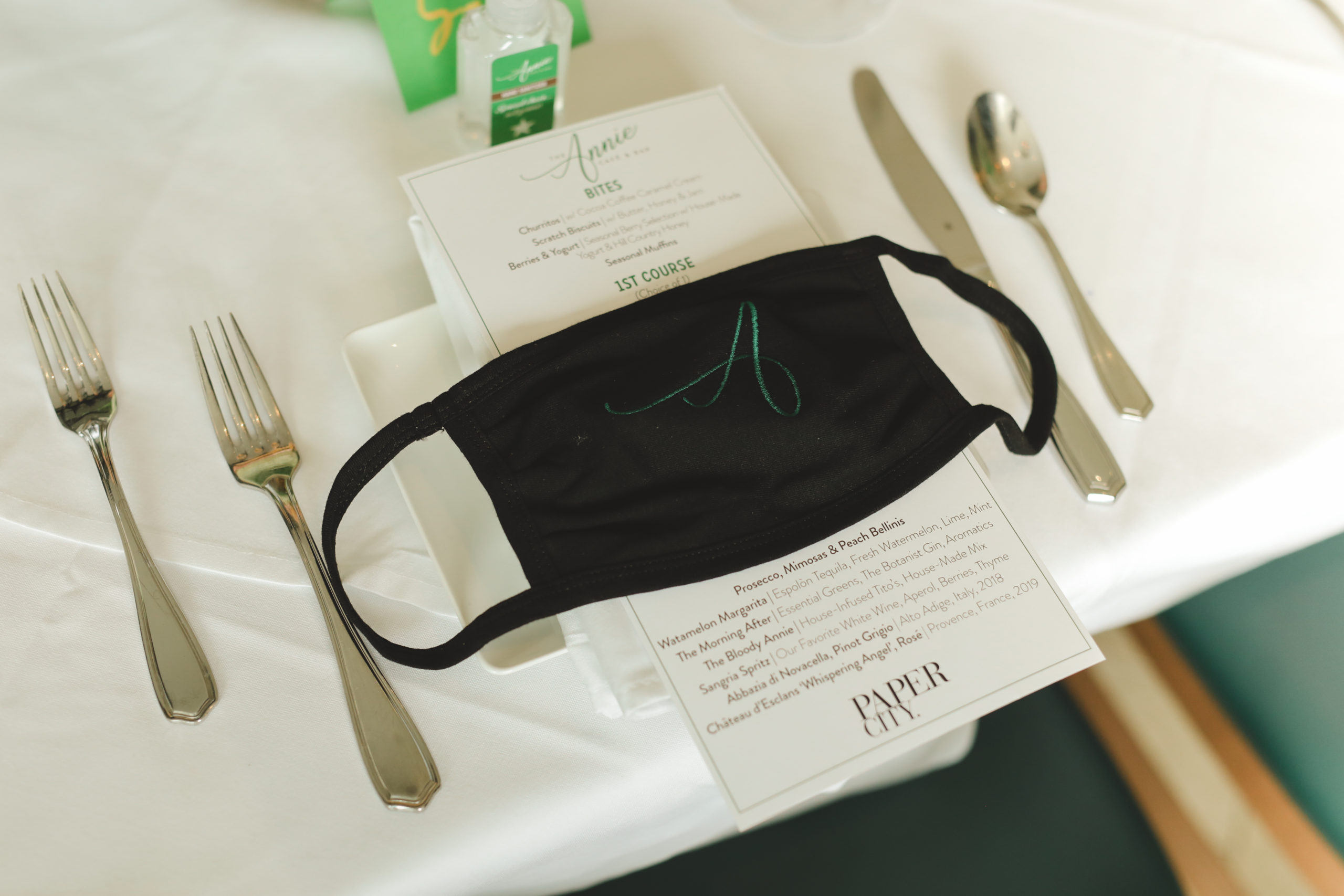 The private room festivities began with samplings of specialty cocktails from the brunch menu. It was a tough decision as waiters swirled through with trays of peach bellinis, mimosas, watermelon margaritas and wine. Masks removed only for sipping and photographs.