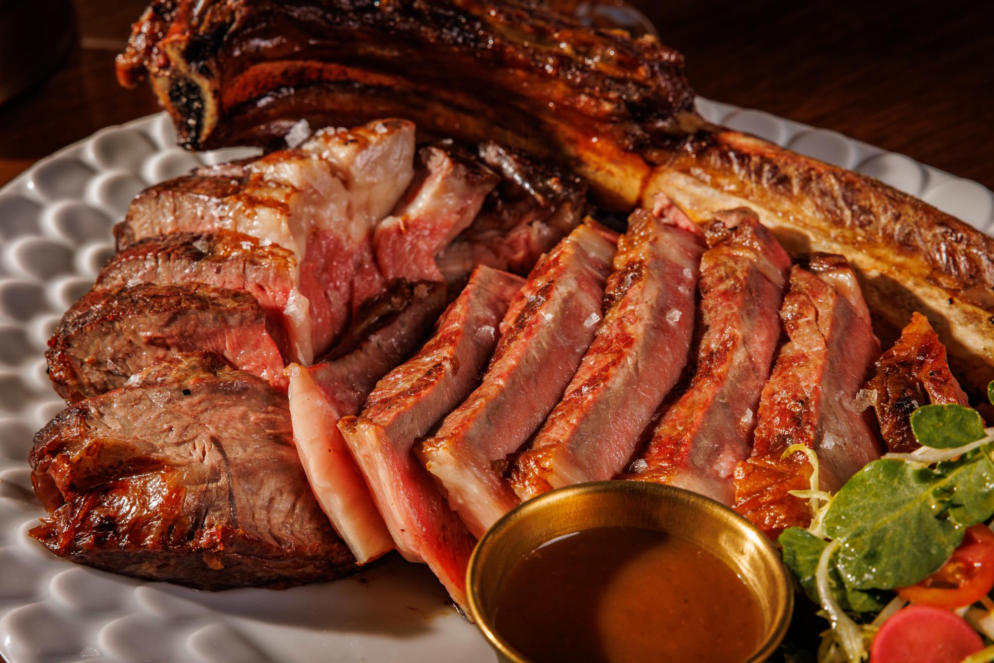 At Bowie House, Bricks and Horses draws directly from Texas’ ranching roots, shaping its steak program around local sourcing and seasonal ingredients. The kitchen works closely with regional producers, featuring beef from operations like Rosewood Ranch and Four Sixes Ranch, alongside other Texas-raised proteins. Steaks are prepared in a Mi Brasa charcoal oven, giving each cut a subtle smokiness that sets it apart from more traditional broiler-driven steakhouses. Rather than a fixed menu, the lineup shifts with availability.