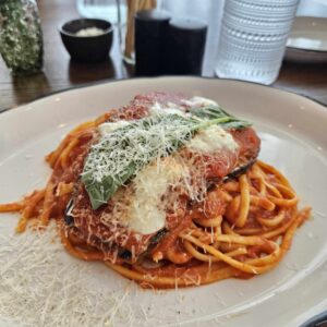 BY Edward Brown //Margie’s eggplant Parmesan is perfectly crisp on the outside and layered with rich, comforting flavor. (Photo by Edward Brown)