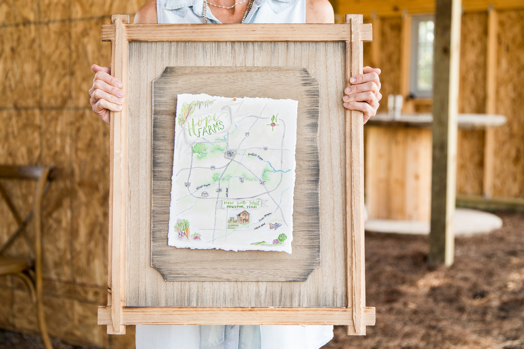 Four days prior to the event, as promised, details for the secret supper club were emailed to guests. Immediately setting the tone for what was to come, a stunning watercolor map by artist Nancy Bihlmaier of Nancy B. Creative revealed the location as Hope Farms, a new urban farm created by Recipe for Success. The farm is so new that Recipe for Success hosted their first event — the inaugural iteration of Chefs in the Field at Hope Farms — there the week prior.