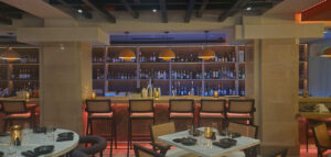 Located on the basement level of the hotel, diners will be transported into a tranquil Japanese garden with Zen lighting, Shinto red walls, gilded artwork and intimate izakaya-style seating in snug spaces and even “floating” banquettes,” according to a release. There are multiple private dining rooms and a 2,000-square-foot black lacquer “faux Japanese screen” bar, back-lit in red.