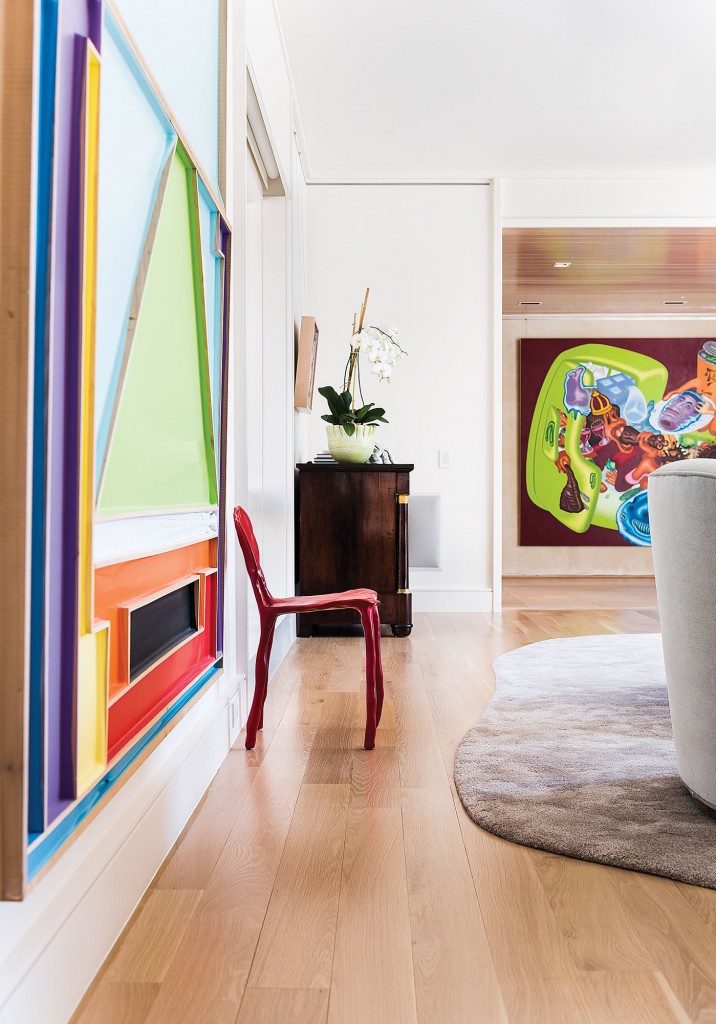 After a 15–year career as a private art advisor, the homeowner recently retired to focus on building her own collection, which includes works by mid-career and established artists such as Peter Saul. She’s intensely interested in outsider art, including works by Vahakn Arslanian, James Castle and Mark Lombardi; she also owns important drawings and paintings by Jim Nutt, a Chicago Imagist. Her personal collection comes out of her relationship with artists.