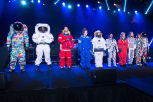 While the music was enticing, it was the entrancing array of artifacts from Space Center Houston and Johnson Space Center that most guests will remember long after the party. The display included a rare meteorite, a Spidernaut, an exoskeleton and a hybrid reality technology demonstration used to train astronauts, and, of course, the astronaut suit photo opp. Add the parade of spacesuits from the stage to the space age immersion.