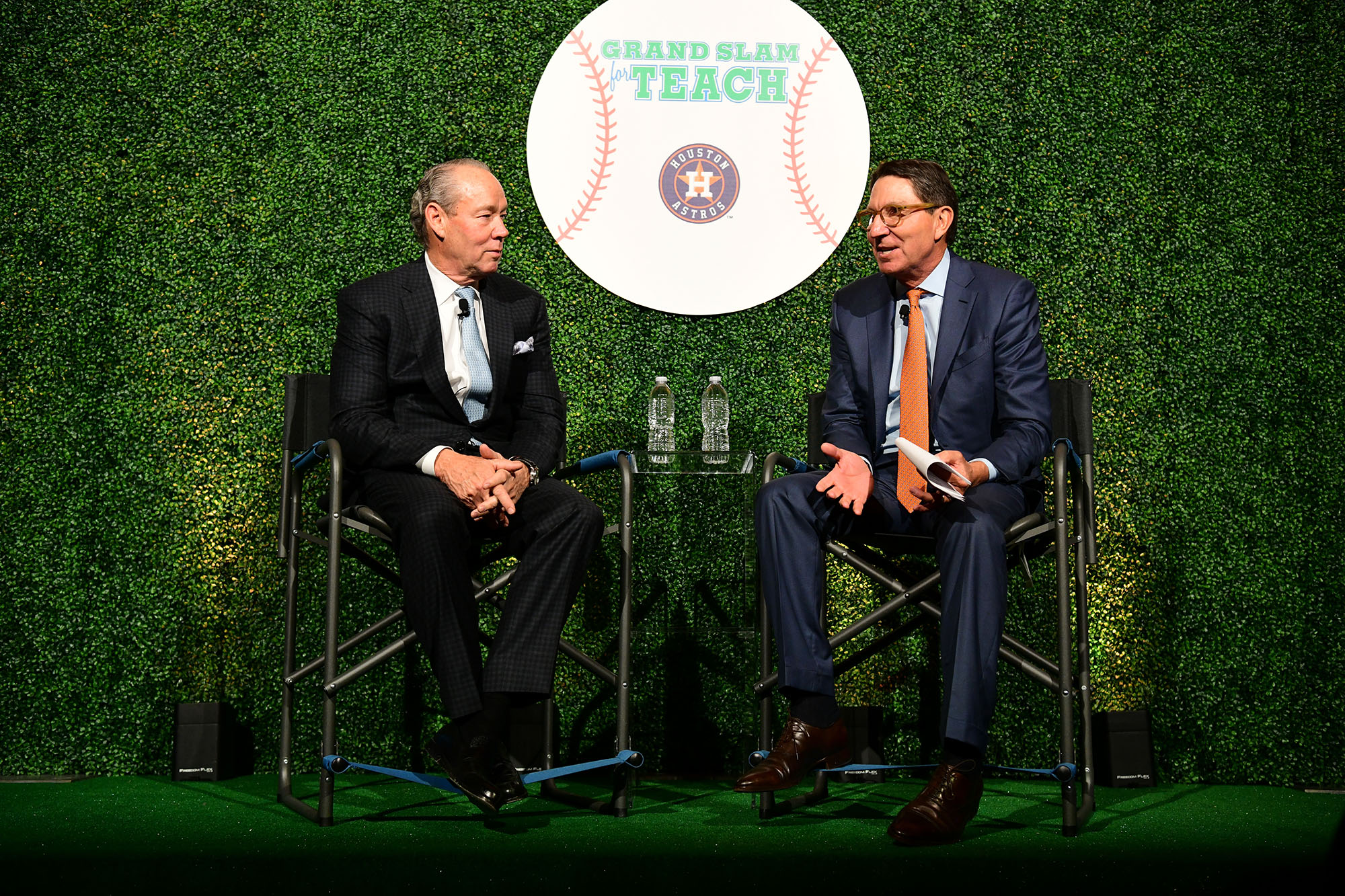 When Houston Astros owner Jim Crane intoned, “It’s all in the numbers. The numbers don’t lie,” he was, of course, referring to baseball. But that axiom could as easily have been applied to the “Grand Slam for TEACH” fundraiser that found him on stage at River Oaks Country Club being interviewed by the congenial Mr. H-E-B Scott McClelland.