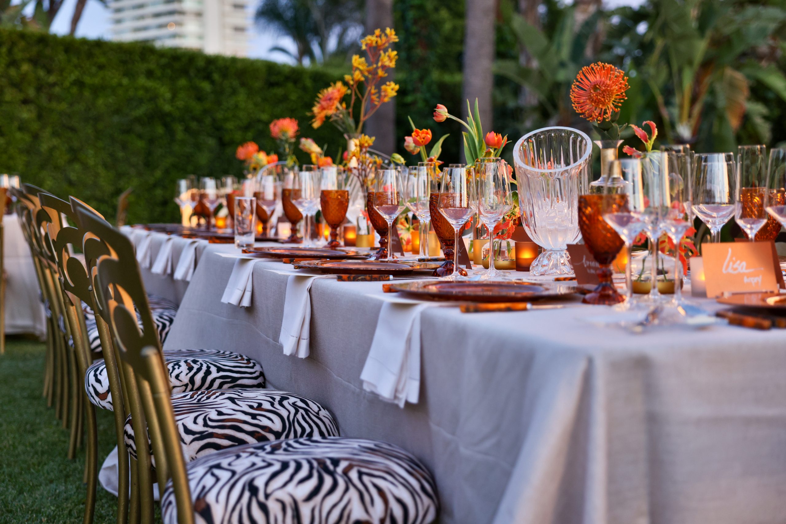 The final evening, which Becca Cason Thrash lovingly dubbed La Grande Nuit, was held at the formidable Holmby Hills estate of the Honorable Colleen Bell and Bradley Bell. The itinerary proclaimed: “Formal black-tie dinner.” Colleen, a former U.S. Ambassador to Hungary, and Bradley, a multi-Emmy Award-winning writer/producer, opened their art-filled home for cocktails and seated dinner in a dazzling tent on the grounds of their estate.