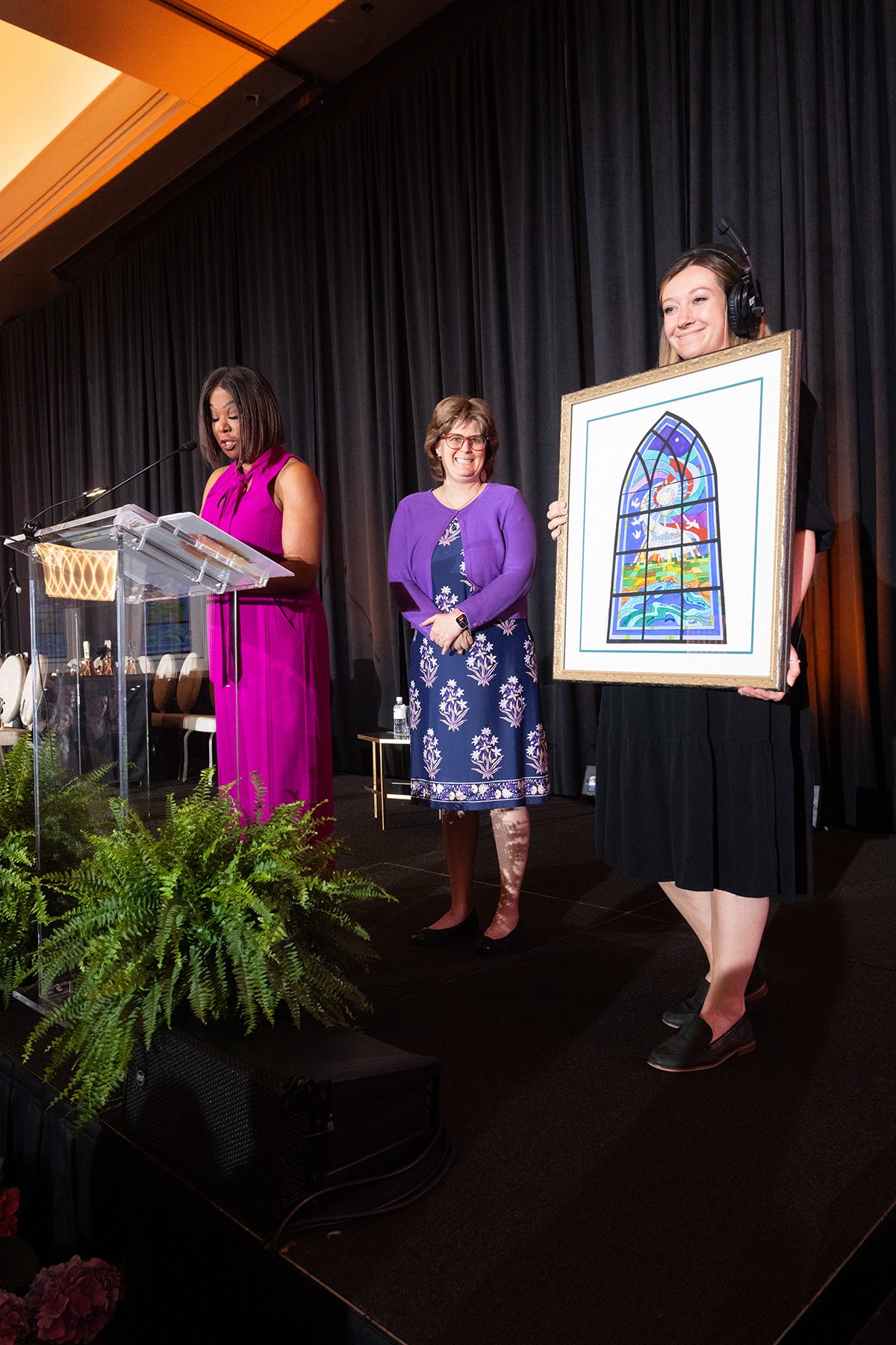 The room pulsed with energy as supporters rallied around Citizens, ultimately raising more than $1.2 million to fund programs that change Citizens’ lives, sustain daily operations, and contribute to the $1.8 million-plus in annual scholarships. One of the afternoon’s most captivating moments came during the Best Bid, where art and philanthropy intertwined. A striking piece inspired by the stained glass of Brookwood’s Worship Center, created by Citizen artist Hillary Kern in collaboration with local artist Kim Granhaug, sparked 55 donations and generated more than $144,000, directly supporting Citizen scholarships.