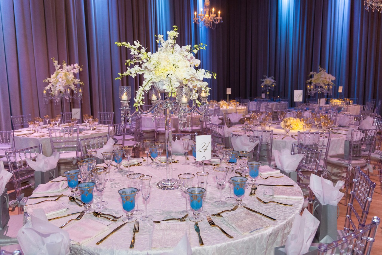 Water goblets inlaid with gold from POSH Couture Rentals headlined tablescapes with touches of bright blue, glass and gorgeous white florals from Bill Bostelman. The City Kitchen Catering menu included a deconstructed beef stroganoff for lunch. Neiman Marcus’ quintessential popovers also made a special appearance in the first course. For dessert: Russian honey cake flanked by chocolates in the form of the famed Russian Matryoshka dolls.