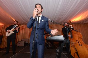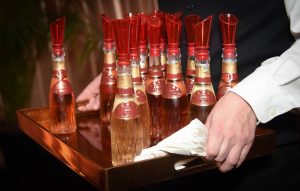 As they posed with the panther, dapper men in signature Cartier uniforms — structured red jackets with gold buttons, tailored black pants, and caps emblazoned with the jewelry maison’s logo — circulated in the tent, offering Cartier cocktails of dark rum, sweet varmouth, campari, and orange while New York singer Paul Loren crooned classics from Van Morrison to Frank Sinatra.