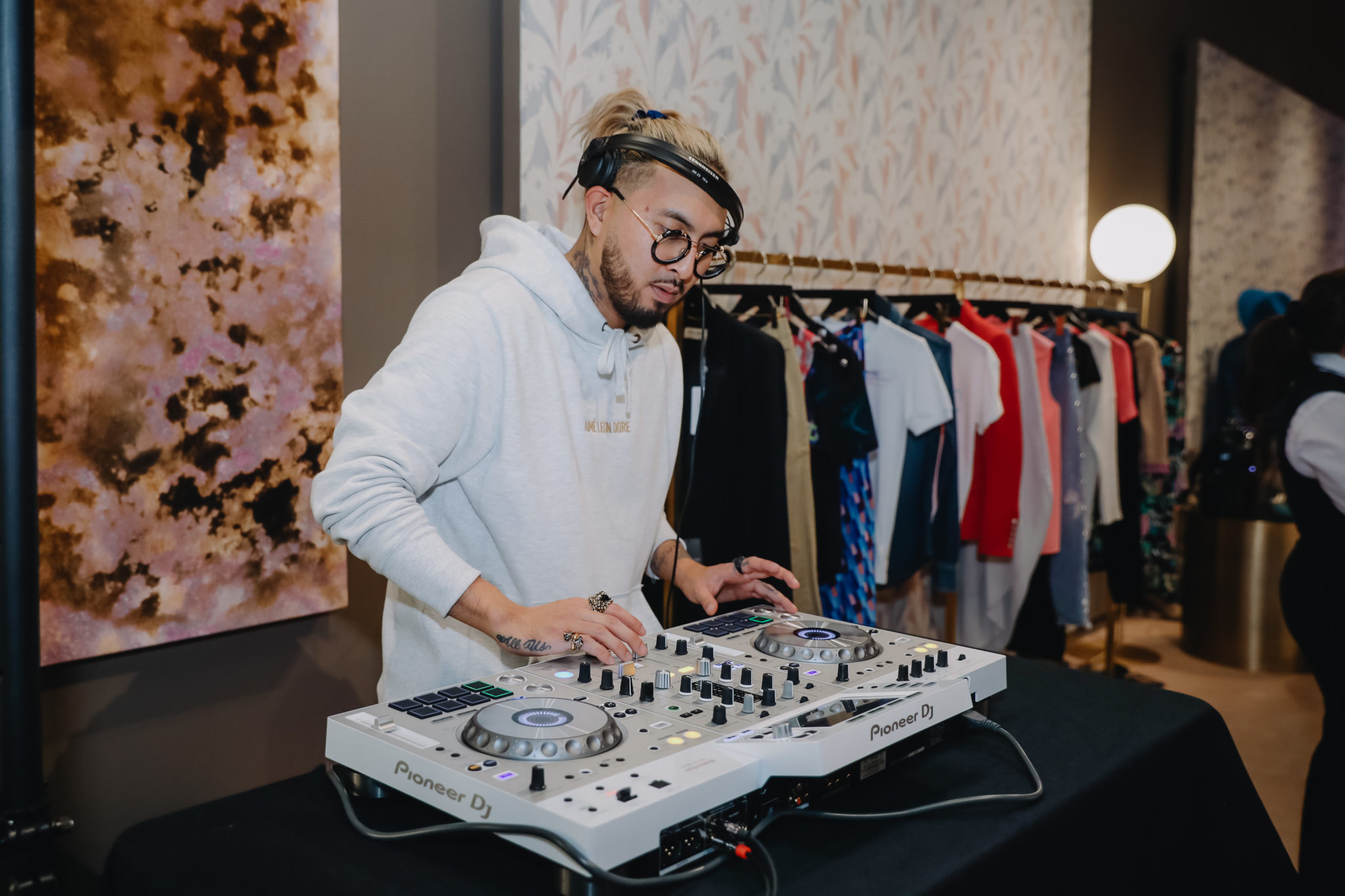 Ceron, decked out in Gucci and accessorized with Balenciaga Triple S sneakers, cut a jolly swath through the clutch of cool kids. (The oversized multi-material sneakers with quilted effects are so popular that the Balenciaga website is sold out.) With champagne flutes in hand, guests perused the holiday fashions from Dior, Saint Laurent, Gucci, Balenciaga and LHD, Webster founder Laure Heriard-Dubreuil’s line.
