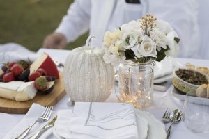 Once they arrived at the urban oasis, their work was not yet done. With tables, chairs, and ornate tablescapes (all en blanc) in tow, they set up and prepared for the night ahead.
