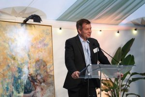 That evening the Hineses opened the gates to their garden overlooking the picturesque Roaring Fork River for an evening of socializing, fundraising, and friend-raising. The Hineses welcomed guests while the docs shared a bit of their wisdom. A talented artist, Barbara Hines donated an abstract oil on canvas, “The Rio Grande Trail II” for the silent auction which raised $81,000 overall. The painting alone fetched $17,500, purchased by Sheree and Nelson Frede.