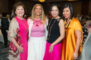 Luncheon chairs Philamena Baird, Houston Arts Alliance board chair, and Regina Garcia, owner of the specialty shop Events, added the “radiance” to the always colorful Razzle Dazzle luncheon. The creative duo designed pearl and rhinestone brooches for every guest, the sparkling pins tucked inside dazzling gift boxes. “As a sign of unity,” Baird told the eager crowd, “we ask that you wear this brooch and make a commitment to share your radiance in the world.”