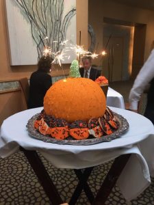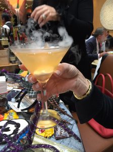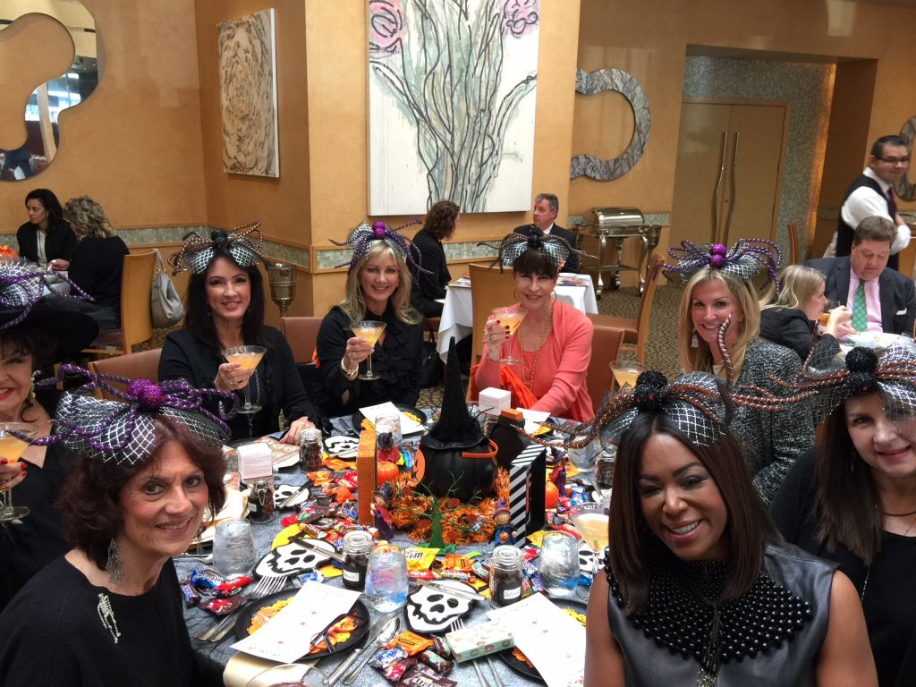 With the table decorated in kid’s party mode (think Snickers bars, M&Ms, etc.), the ladies feasted on “bloody tomato soup” topped with a crisp tomato and a dollop of red-hued burrata, pumpkin crusted snapper or chicken accompanied by to-die-for buttery biscuits and truffle-topped pansoti and concluded with a sparkling “Jack O’ Lantern” bombe glace topped with sparklers and accompanied by housemade Halloween cookies. Highlight of the lunch — the bubbling, smoking “Bewitched Voodoo Vampire Vodkatini.”