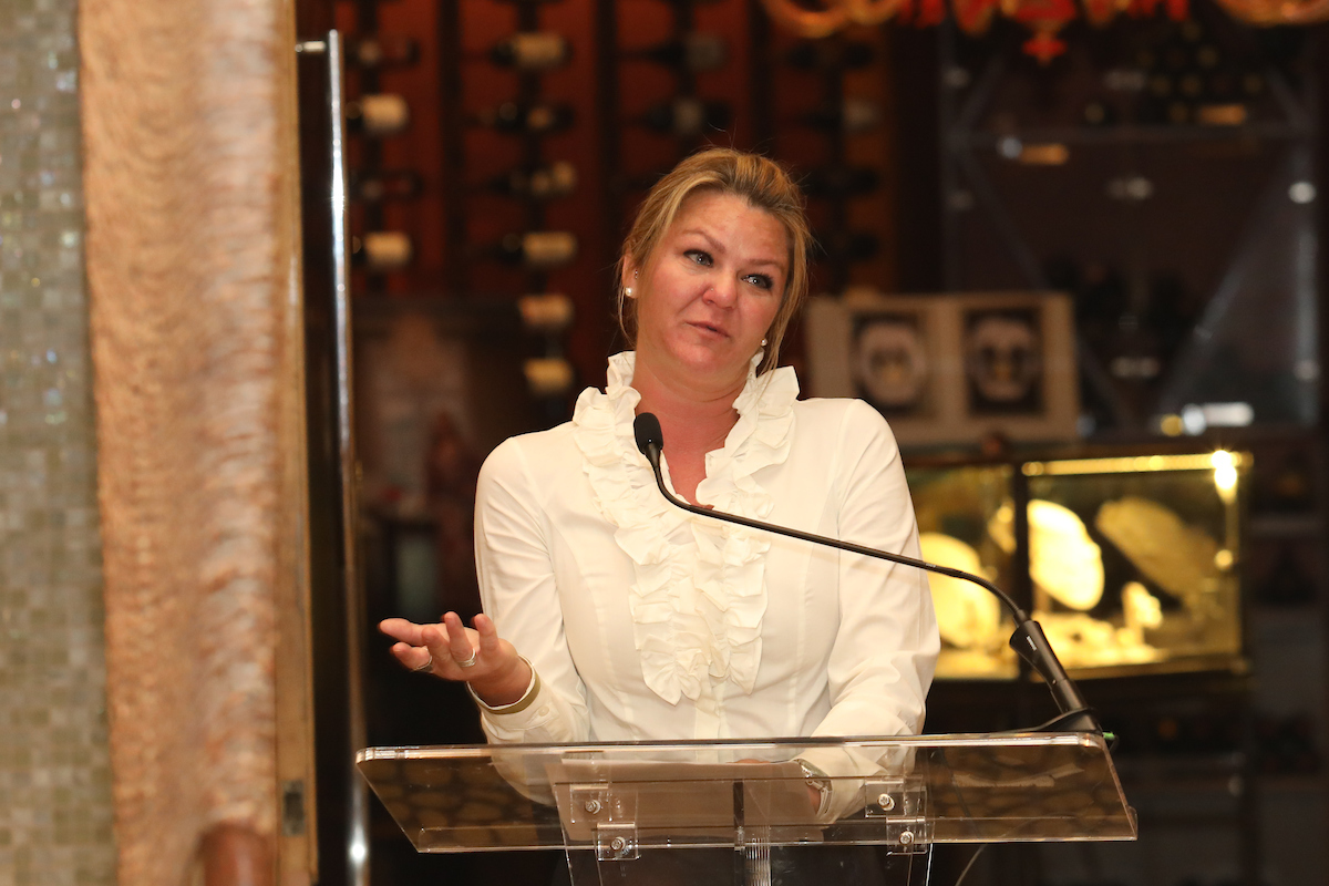 Really big applause for luncheon chairs Brigitte Kalai and Alicia Smith, who had been tapped as chairs two years ago yet persevered to bring in the remarkable funds. Congratulations also to Rosemary (aka Rosemoney) Schatzman for her extraordinary fundraising skills.