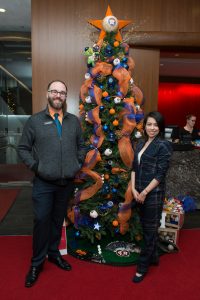 It was fa-la-la-la-la all over the Alley Theatre as a jubilant group poured in to celebrate not only the annual Deck the Trees festivities but also the first night in the theater following the flood waters of Hurricane Harvey. The evening was the most successful holiday tree event to date with more trees and wreaths than ever and a whopping $330,000 (triple that of previous years) raised to help support the Alley’s continuing recovery efforts.