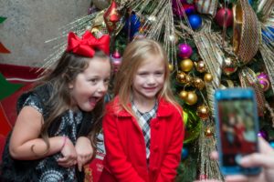 BY Shelby Hodge //The Alley Theatre's Deck the Tree decor the perfect photo backdrop for youngsters attending 'A Christmas Carol.'