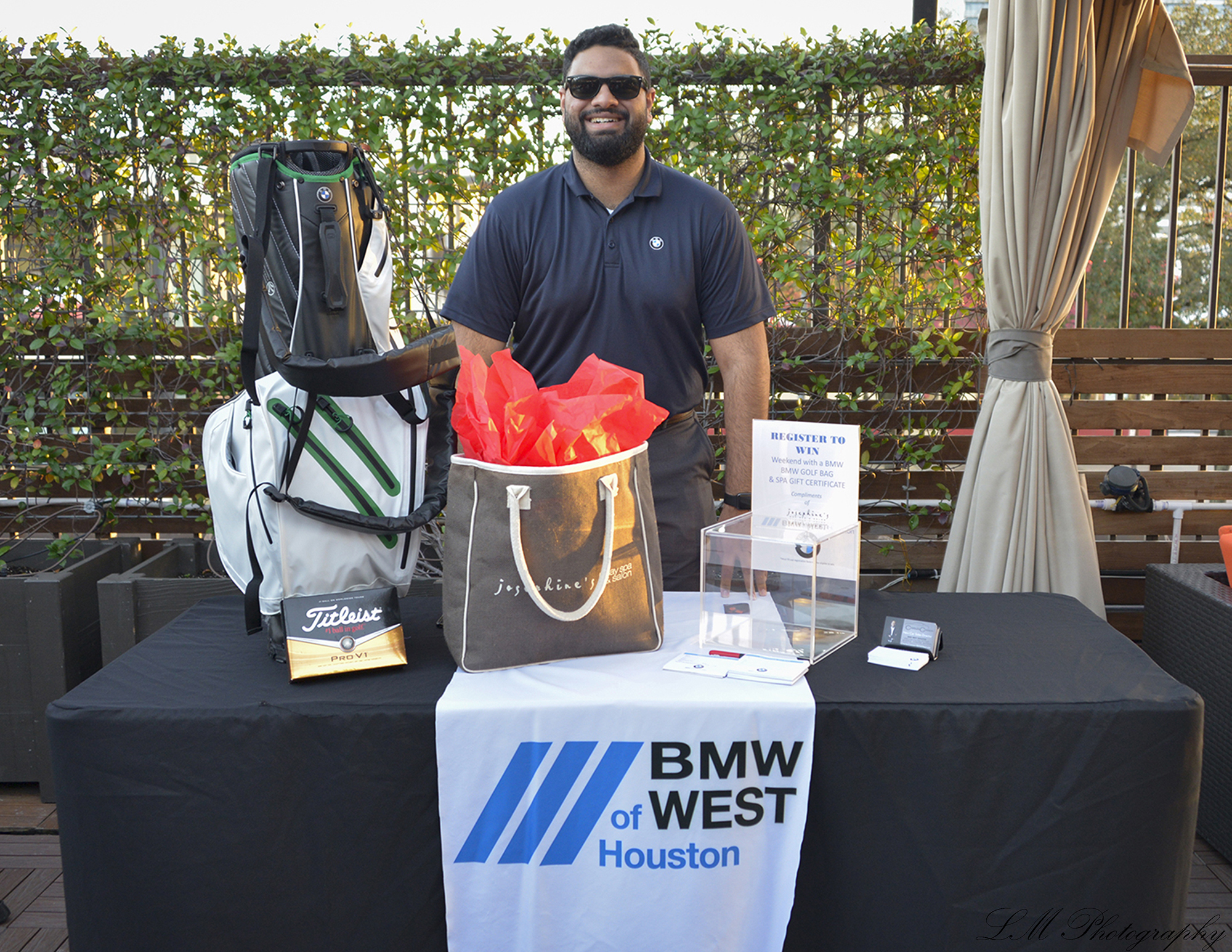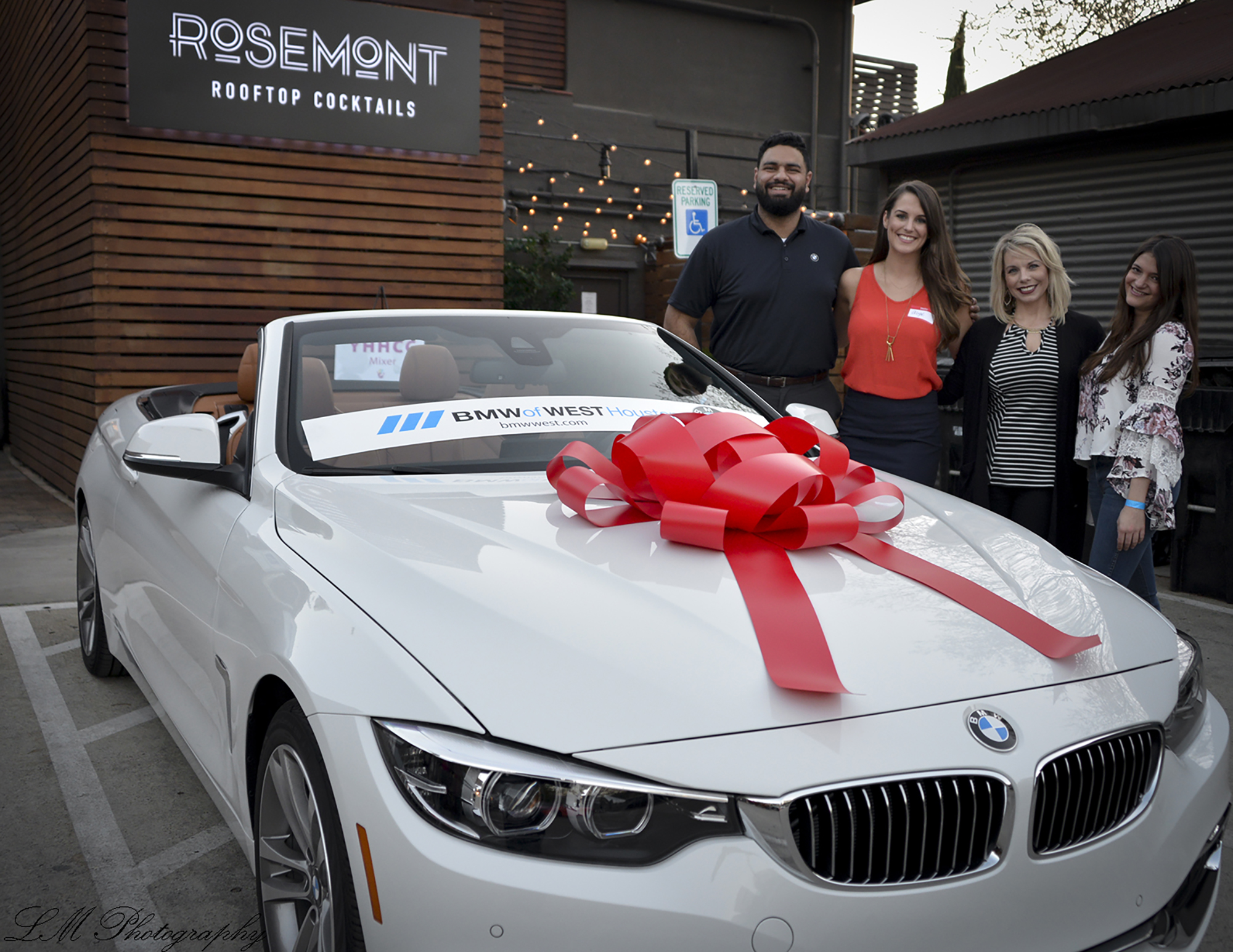 The car dealership also provided one of the many enticing raffle items — a luxury rental opportunity. And what would be a BMW party without one of the sexy four-wheelers on site? A white convertible with a big red bow was a hot enticement.