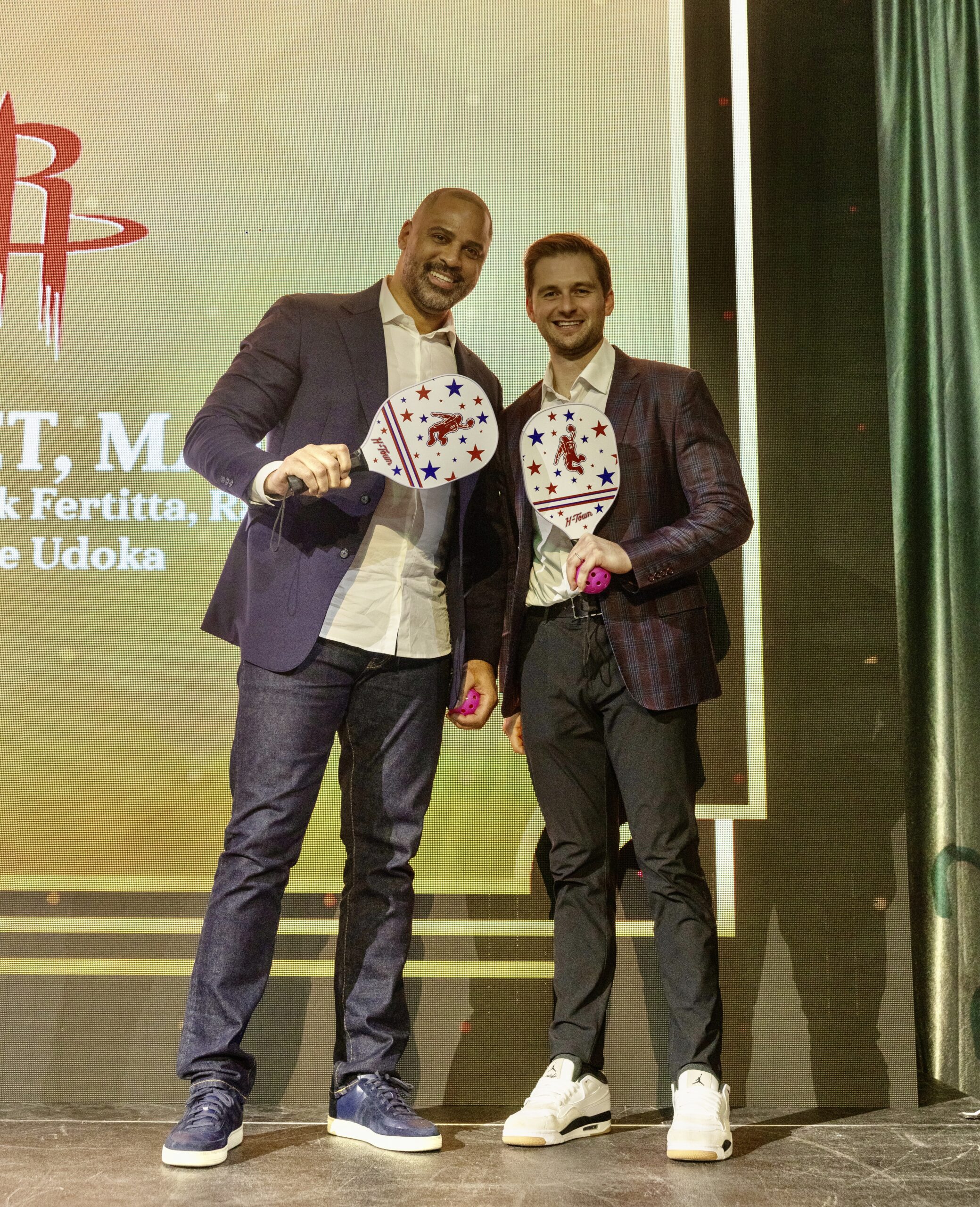 With Rockets owner turned United States Ambassador Tilman Fertitta on duty in Italy preparing for the Winter Olympics, Rockets alternate governor Patrick Fertitta served as the night’s official host.