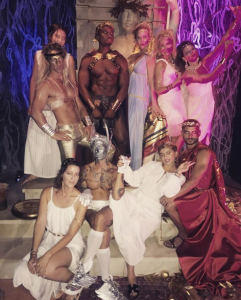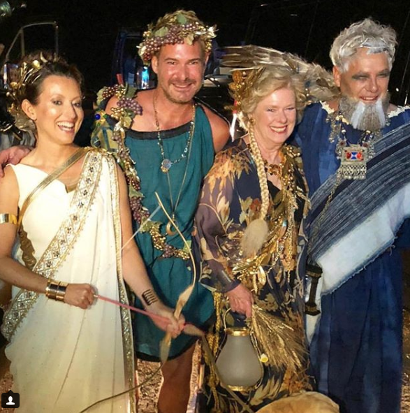 Interrupting Texas’ summer social doldrums, we turn our attention to Mykonos where jet setting sojourners from across the globe recently landed for a birthday bash that could rival last summer’s Liaisons au Louvre fête reigned over by Houston’s Becca Cason Thrash. In fact, we discovered via Instagram that La Becca and husband John Thrash were among the wildly costumed coterie that joined New York City uber party planner Bronson van Wyck for his 45th birthday celebration.