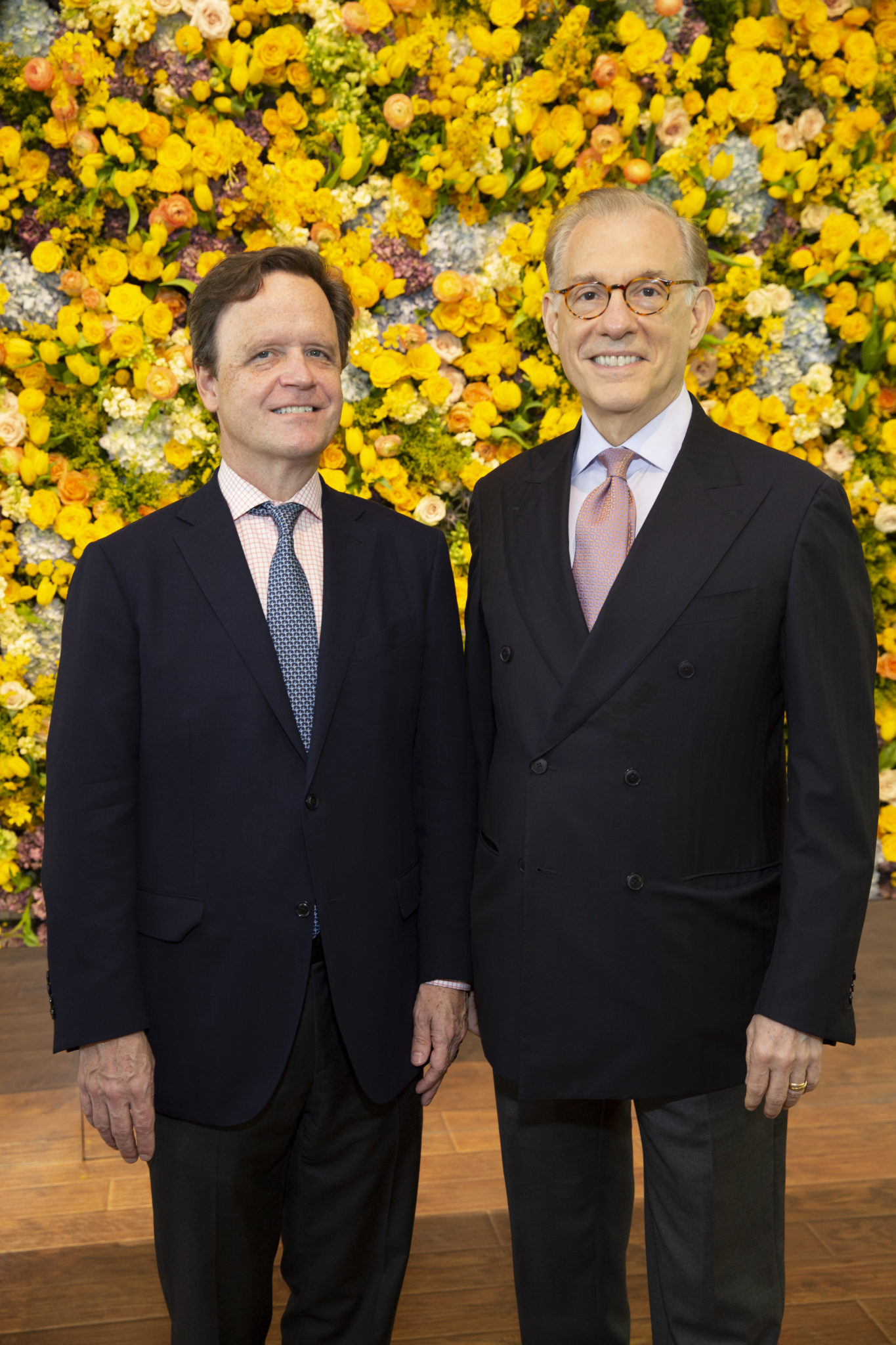 The ladies were mad for his ladylike fashions, which are occasionally infused with the hint of edginess, his years at Oscar de la Renta coming through in the pre-fall and fall designs that Lippes presented against one of the most gorgeous floral walls ever — a masterpiece of yellow and gold roses, orchids, tulips and ranunculus spiced with pops of purple and light blue hydrangeas and waves of white snapdragons and more by The Events Company. That floral touch was complimented by beautiful pastel centerpiece bouquets from Stems Custom Florals.